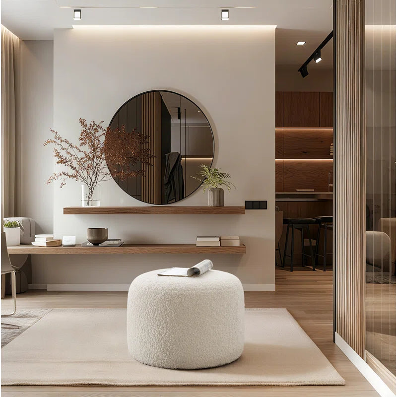 Regeani 24" Modern Round Upholstered Pouf Ottoman